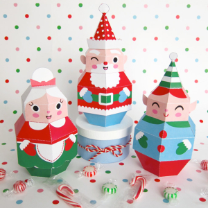 Santa, Mrs. Claus and Elf Treat Boxes Prinatble Paper Christmas Crafts