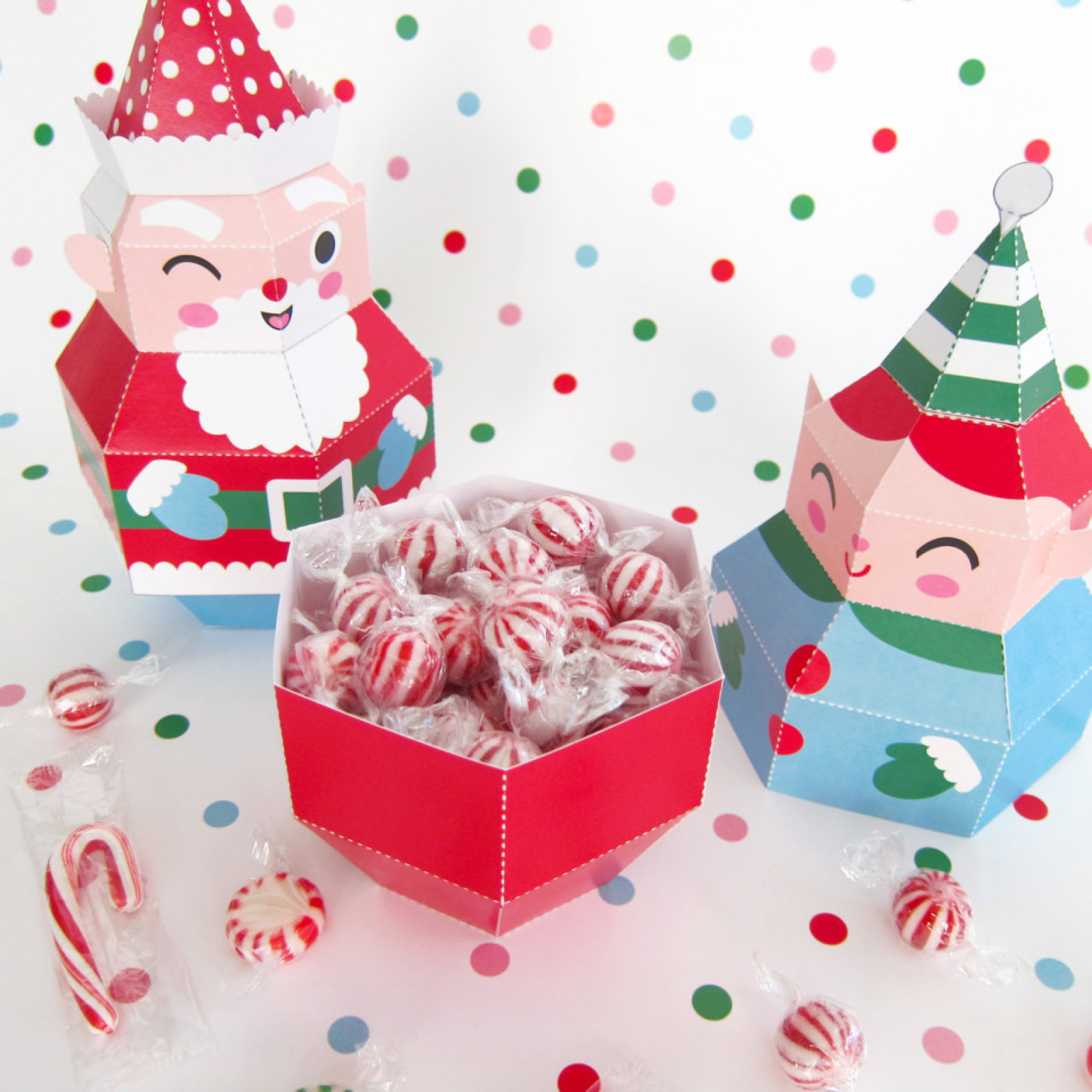 Santa, Mrs. Claus and Elf Treat Boxes Prinatble Paper Christmas Crafts